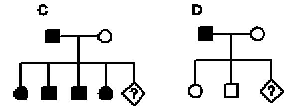 Penetrances are P(A|DD)=1, P(A|ND)=0.1, P(A|NN)=0.05.